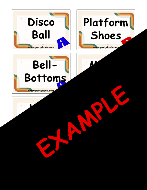 Cue the mirror ball, hit print, and watch your guests find their groove! Download your PartyKook Groovy ’70s Disco Find Your Match game today and make every party sparkle.